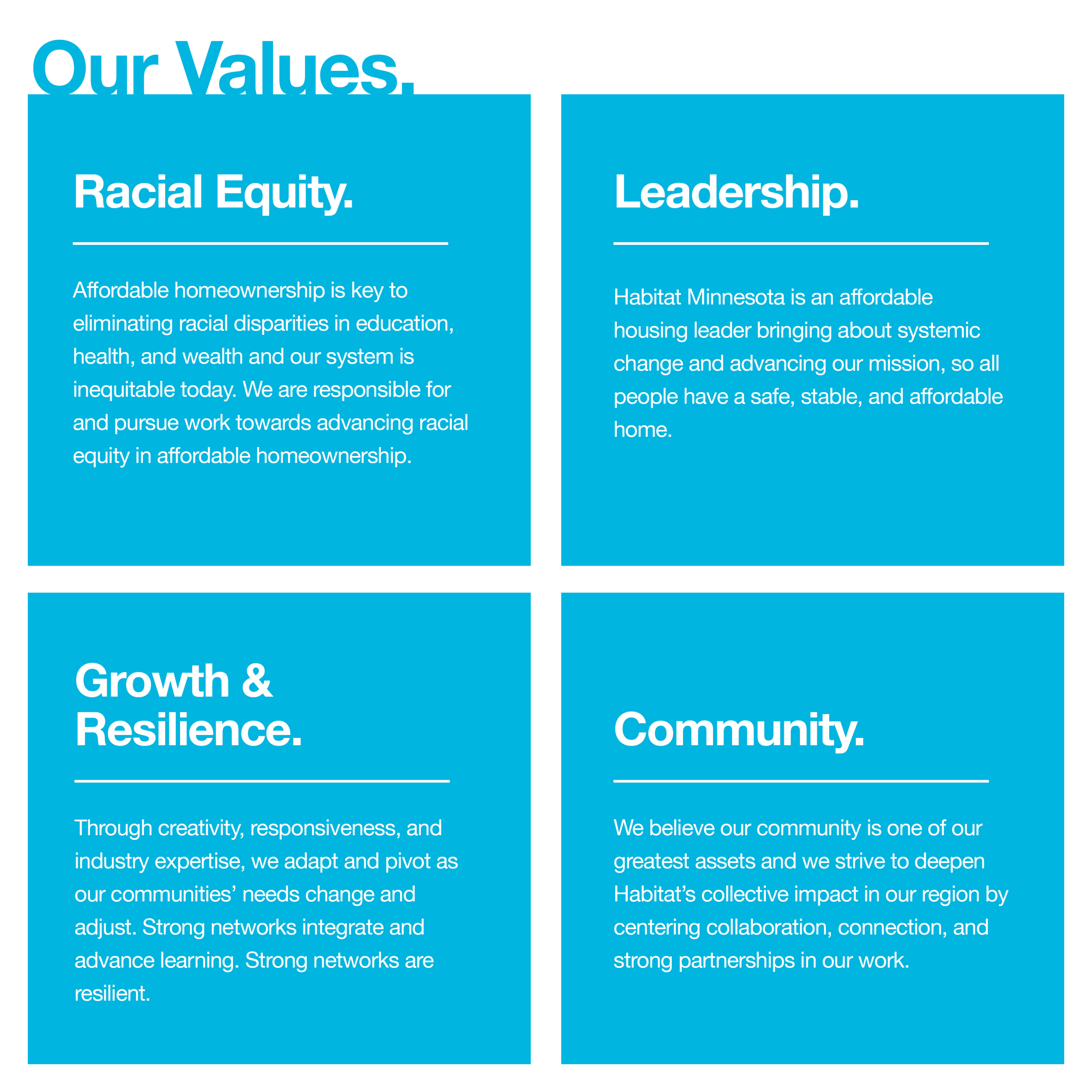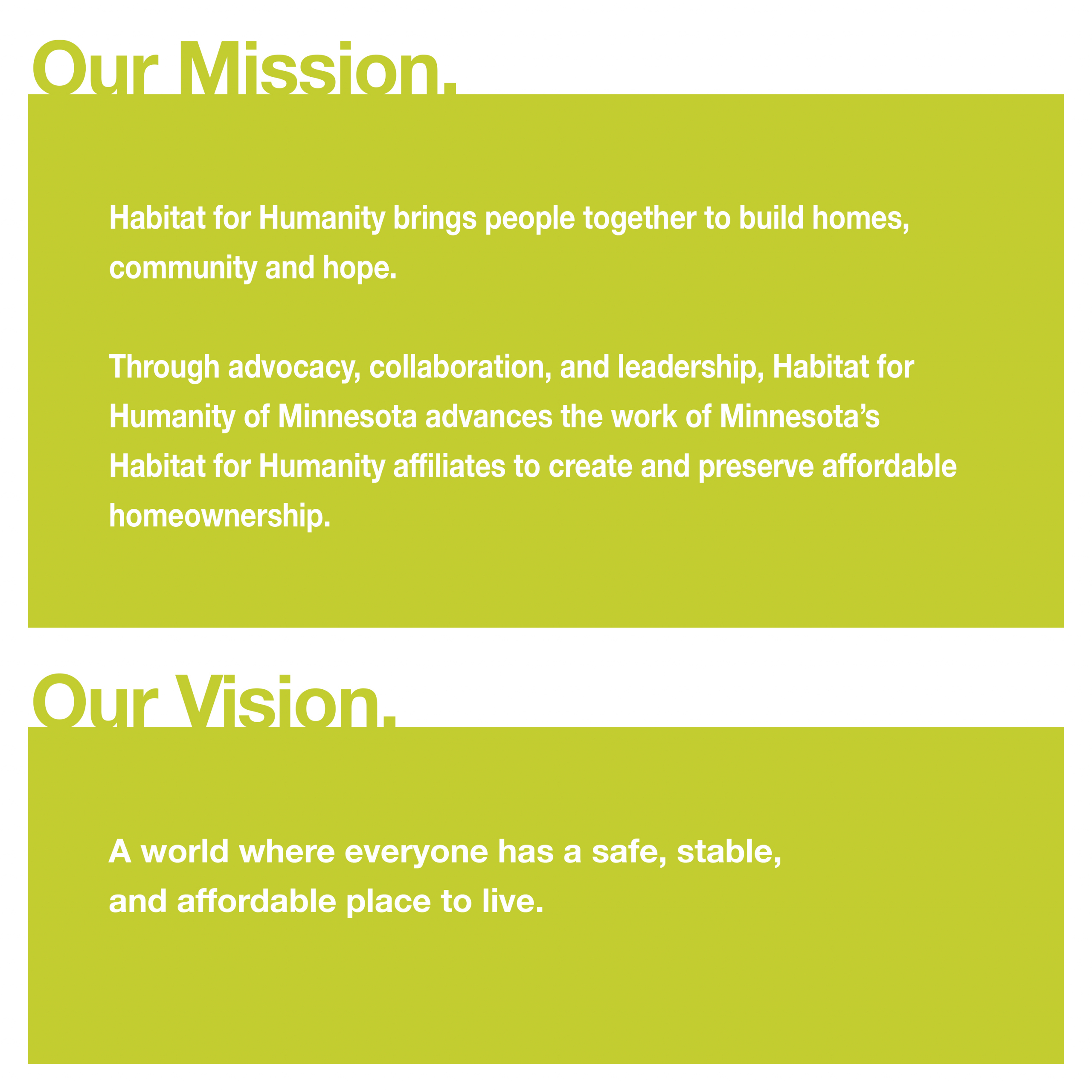 Habitat Minnesota is an affordable homeownership leader bringing about systemic change and advancing our mission, so all people have a safe, stable, and affordable home.
